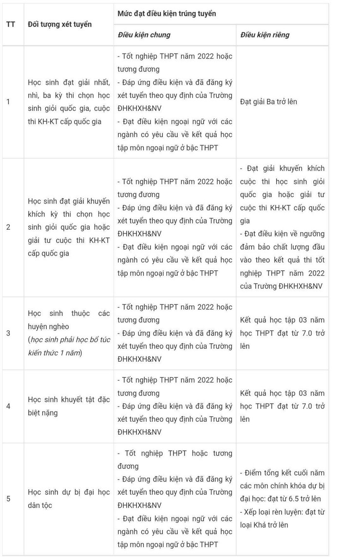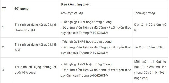 Thí sinh đã đạt điều kiện trúng tuyển hoặc đạt điều kiện xét tuyển vào Trường Đại học Khoa học Xã hội và Nhân văn (Đại học Quốc gia Hà Nội) theo các phương thức 301, 303, 401, 409 phải tiếp tục đăng ký nguyện vọng xét tuyển trên hệ thống tuyển sinh của Bộ Giáo dục và Đào tạo (qua Cổng thông tin tuyển sinh của Bộ Giáo dục và Đào tạo hoặc qua Cổng dịch vụ công quốc gia).