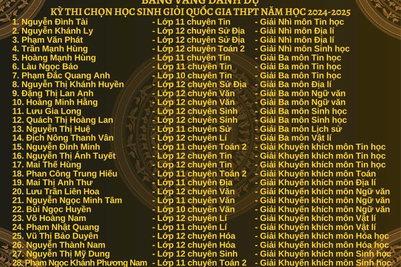 KẾT QUẢ KỲ THI CHỌN HỌC SINH GIỎI QUỐC GIA TRƯỜNG THPT CHUYÊN NGUYỄN CHÍ THANH NĂM HỌC 2025 – 2026