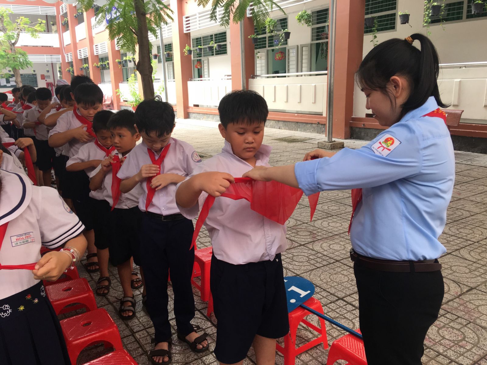HĐĐ phường Tương Bình Hiệp: liên đội tiểu học Tương Bình Hiệp tổ chức lễ kết nạp đội đợt 1