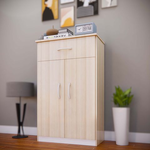 Tủ giày nhựa TG66B - 2 cánh dài, 1 ngăn kéo sồi trắng