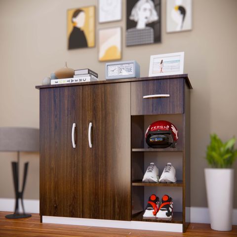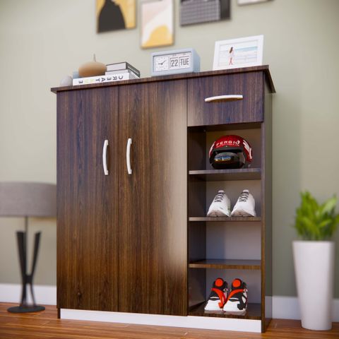 Tủ giày TG126 - 4 cánh, 1 ngăn kéo, ô hở dưới, màu óc chó