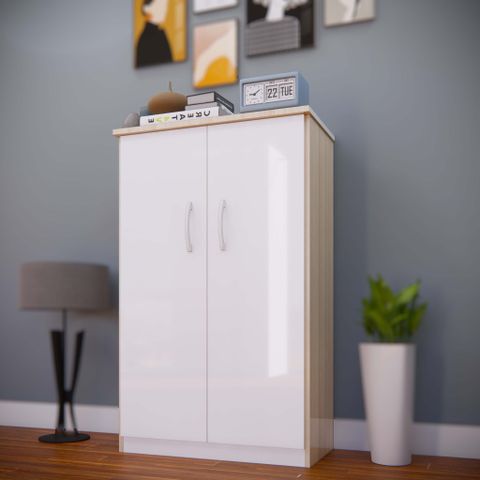 Tủ giày nhựa TG66A - 2 cánh dài, khung sồi cánh trắng (4 đợt, 5 ô)