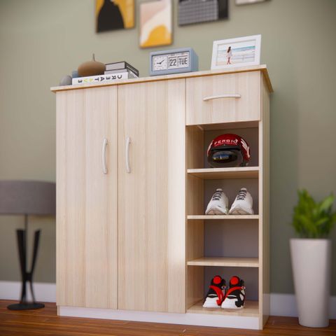 Tủ giày TG126 - 4 cánh, 1 ngăn kéo, ô hở dưới, màu sồi