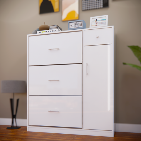 Tủ giày nhựa TG96B - 3 cánh, 1 ngăn kéo, màu trắng