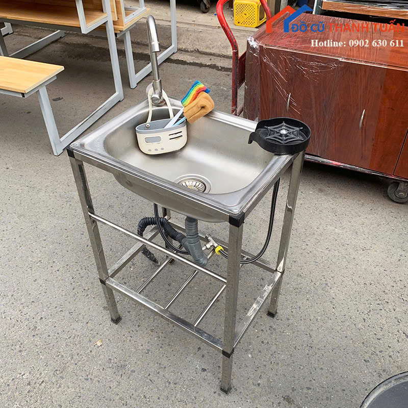 Bồn Rửa Chén Cũ Thiết Kế 1 Hộc Có Kệ Dưới Nhỏ Gọn