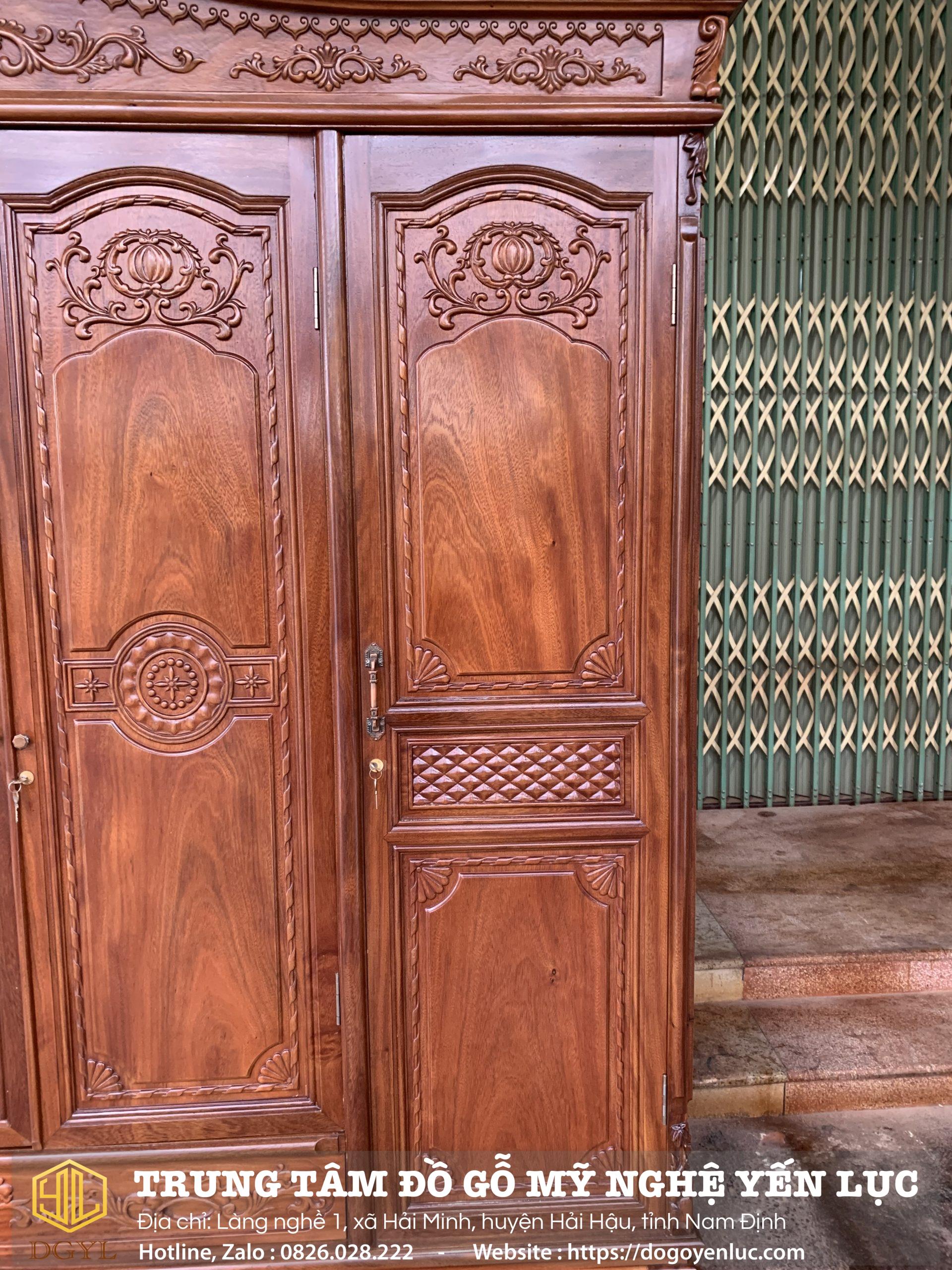Những họa tiết đơn giản của tủ áo gỗ lim 3 buồng 4 cánh