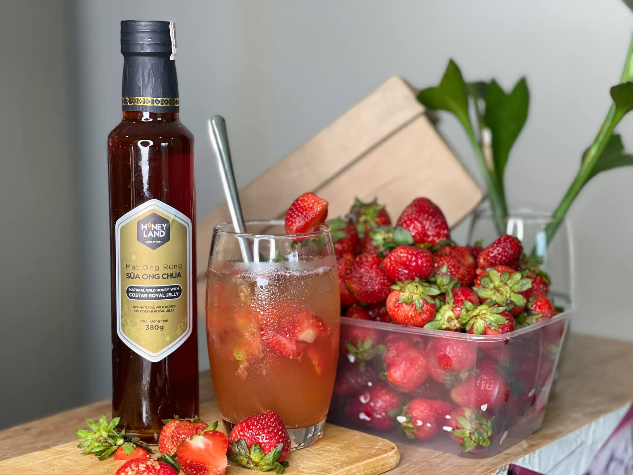 Vị trà đậm đặc, vị dâu chua chua ngọt ngọt cùng vị Mật ong Rừng Sữa Ong Chúa ngọt thanh hòa vào nhau sẽ làm mùa hè của bạn thêm hương sắc. Dâu tây chứa rất nhiều vitamin C và cũng là nguồn cung cấp chất dinh dưỡng cần thiết cho cơ thể của bạn. Kết hợp cùng Mật ong Rừng Sữa Ong Chúa HoneyLand với nhiều công dụng trong việc tăng sức đề kháng, bồi bổ cơ thể. Tất cả tạo nên một thức uống vừa thơm ngon mát lạnh lại vô cùng bổ dưỡng.