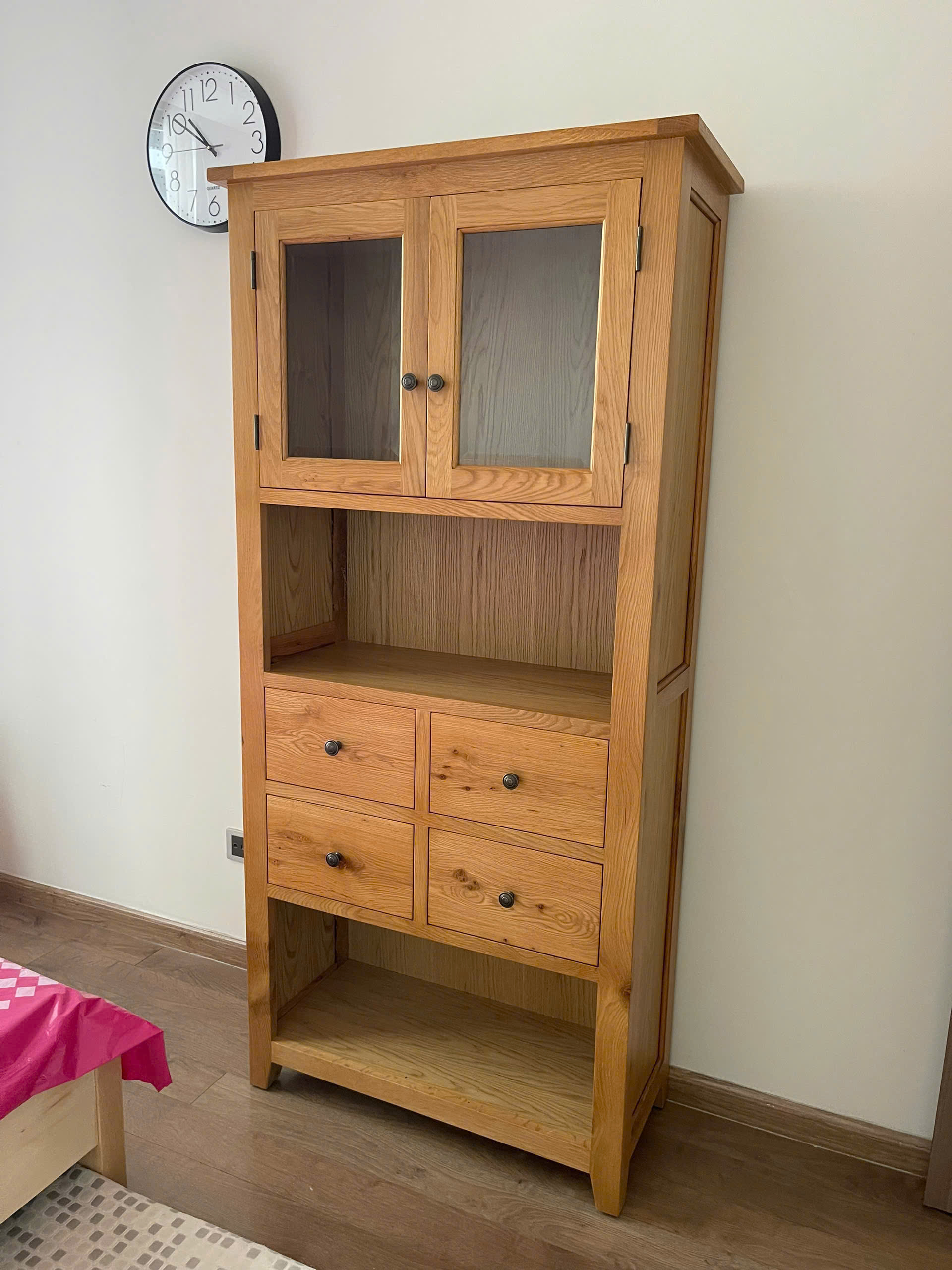 Cty TNHH Eu Furniture Vietnam hiện đang bán tủ gỗ Sồi mỹ trong hình có kiếng để góc phòng tủ 2 cánh kiếng 4 ngăn kéo Kt: 90 x 43 x cao 191cm cam kết với Khách Hàng là sp đạt tiêu chuẩn hàng xuất khẩu ngoài ra công ty còn rất nhiều sản khác như giường, tủ bàn ghế, bàn trang điểm, bàn làm việc, bàn học sinh, gỗ tự nhiên, sofa, salon, tủ kệ tivi phòng khách, tủ kệ phòng ngủ, tủ ngăn kéo để đồ em bé, tủ hộc kéo, tủ quần áo, tủ giày dép, kệ giày dép, kệ sách, tủ hồ sơ, tủ ly, tủ kính trưng bày, hoàn toàn bằng gỗ sồi Mỹ (nặng và rắn) ko sử dụng gỗ sồi nga, hay gỗ xoan, gỗ tạp….