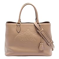 Prada Embossed Logo Soft Leather Handbag Shopper Tote Cammeo Beige 1BA579 113,991,071đ