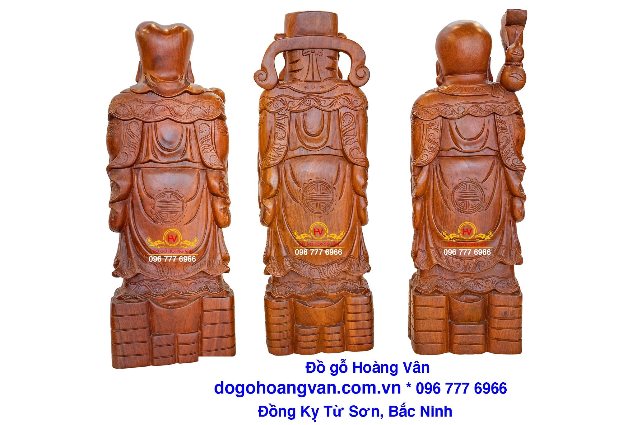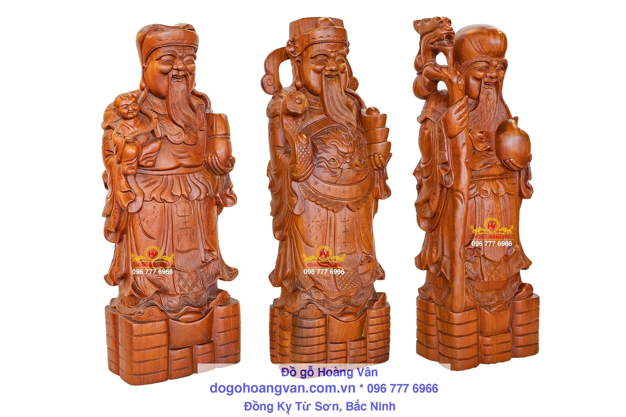 Tên sản phẩm: Tượng 3 ông phúc lộc thọMã sản phẩm: 03v-Kích cỡ; Cao 70cm ( 30 -> 110cm)(kích thước có thể thay đổi do yêu cầu của khách hàng)e. Chất liệu : Gỗ hương 100%, sơn PU ( gỗ gụ, mun )e.Bảo hành : Dài hạn - Bảo trì vĩnh viễn