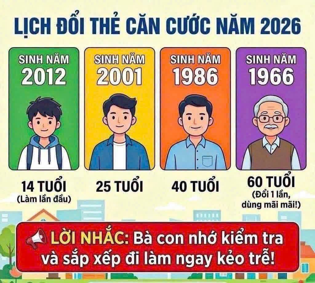 Lịch đổi thẻ căn cước năm 2026