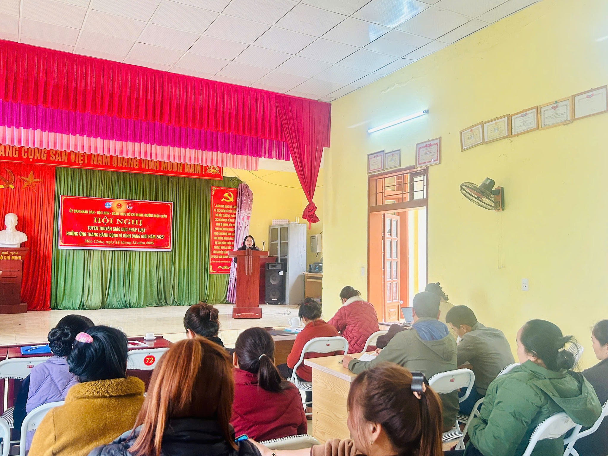 HỘI LHPN PHƯỜNG MỘC CHÂU TỔ CHỨC HỘI NGHỊ TUYÊN TRUYỀN, PHỔ BIẾN PHÁP LUẬTvHƯỞNG ỨNG THÁNG HÀNH ĐỘNG VÌ BÌNH ĐẲNG GIỚI NĂM 2025 -