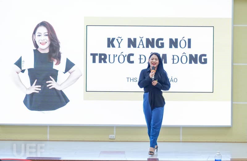 ThS. Chế Dạ Thảo đã mang đến nhiều kiến thức bổ ích về kỹ năng nói trước đám đông Mở đầu chương trình, ThS. Nguyễn Huỳnh Sinh đã nhấn mạnh tầm quan trọng của kỹ năng nói trước đám đông, đó là 1 trong 6 kỹ năng quan trọng dành cho tân sinh viên khi hòa nhập vào môi trường mới. Là người hoạt động trong lĩnh vực đoàn hội, anh mong muốn các bạn sinh viên sẽ rèn luyện tốt kỹ năng này, vận dụng nhuần nhuyễn và đạt được thành công.