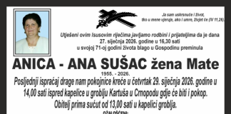 -Obavijest o smrti- ANICA – ANA SUŠAC 1955 – 2026