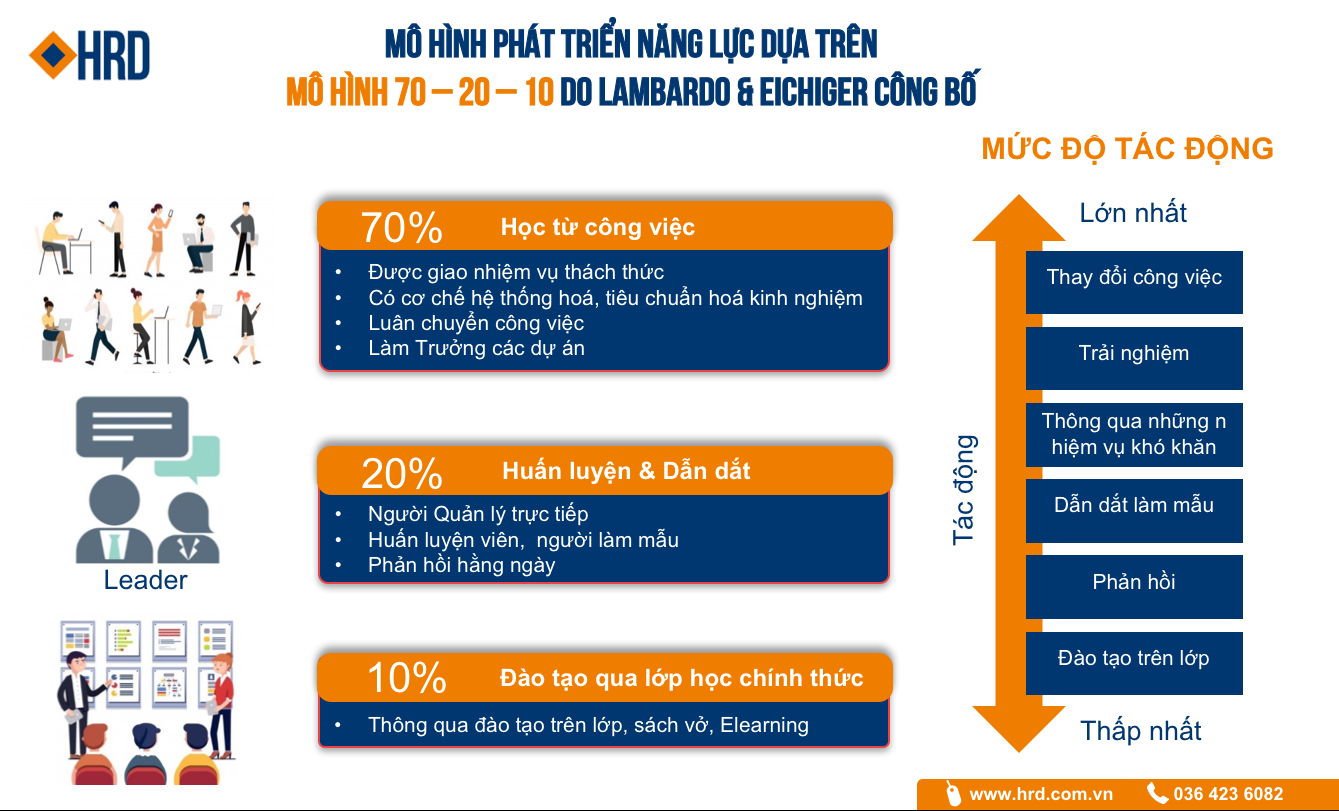 Mô hình 70-20-10 là mô hình học tập và phát triển ưu việt được công bố lần đầu vào năm 1996. Đây là mô hình hiệu quả nhất, được sử dụng tại nhiều doanh nghiệp lớn trên khắp thế giới trong việc giúp nhân viên phát triển và hoàn thành tốt công việc.