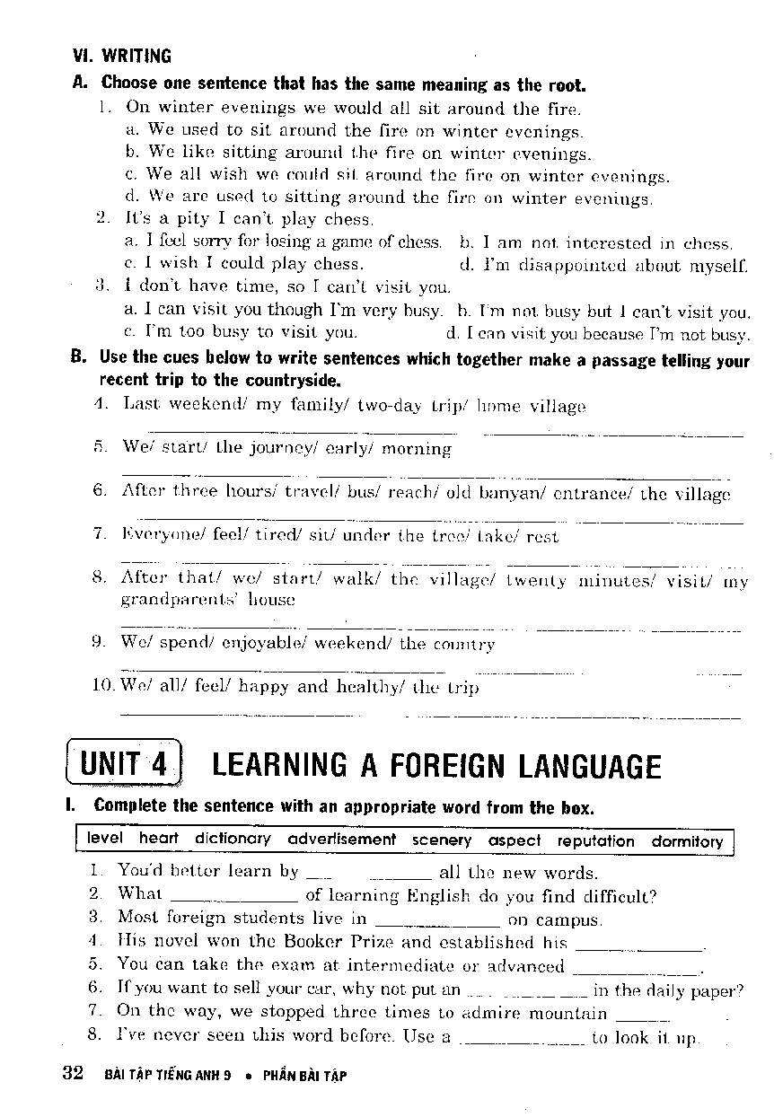 Unit 3 English 9 - Bài Tập Tiếng Anh Mai Lan Hương 9 (phần I, II)