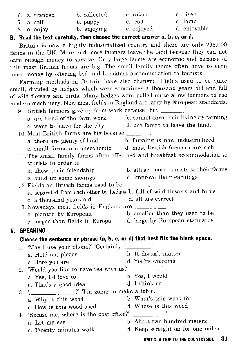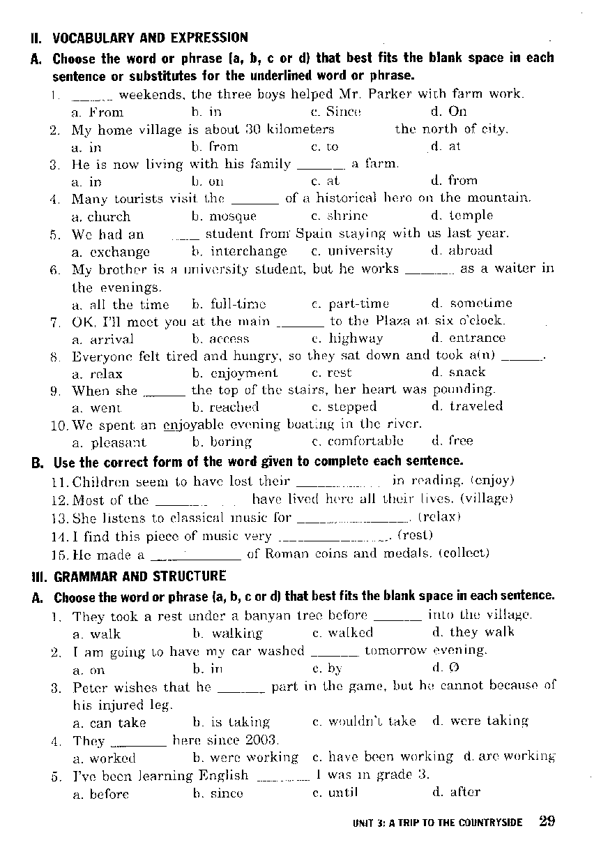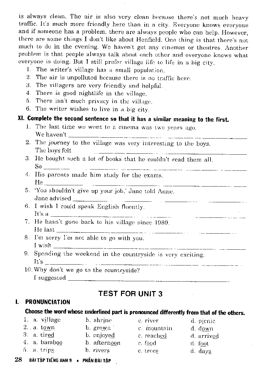 Unit 3 - Bài Tập Tiếng Anh Lớp 9 - Có Đáp Án - Mai Lan Hương