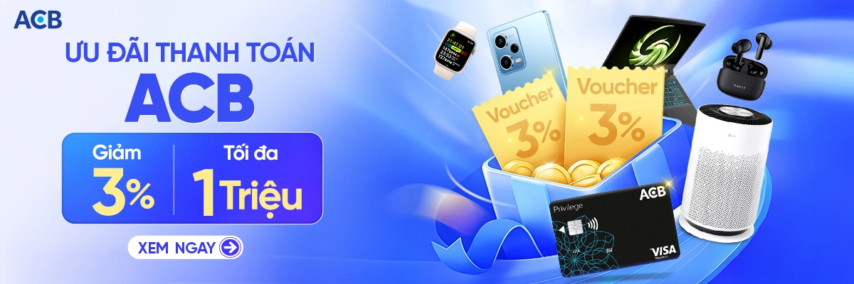 ƯU ĐÃI GIẢM ĐẾN 1 TRIỆU KHI THANH TOÁN QUA THẺ TÍN DỤNG ACB