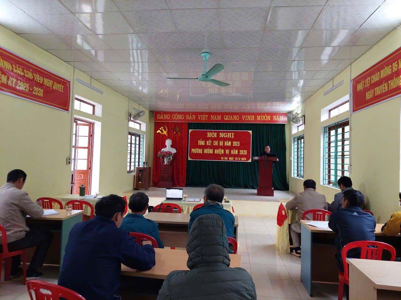 Đồng chí Luân Chiến Công, Tỉnh ủy viên, Bí thư Đảng ủy, Chủ tịch HĐND xã Hòa An đã đến dự và chỉ đạo buổi tổng kết công tác năm 2025 của Chi bộ xóm Ca Rài. -