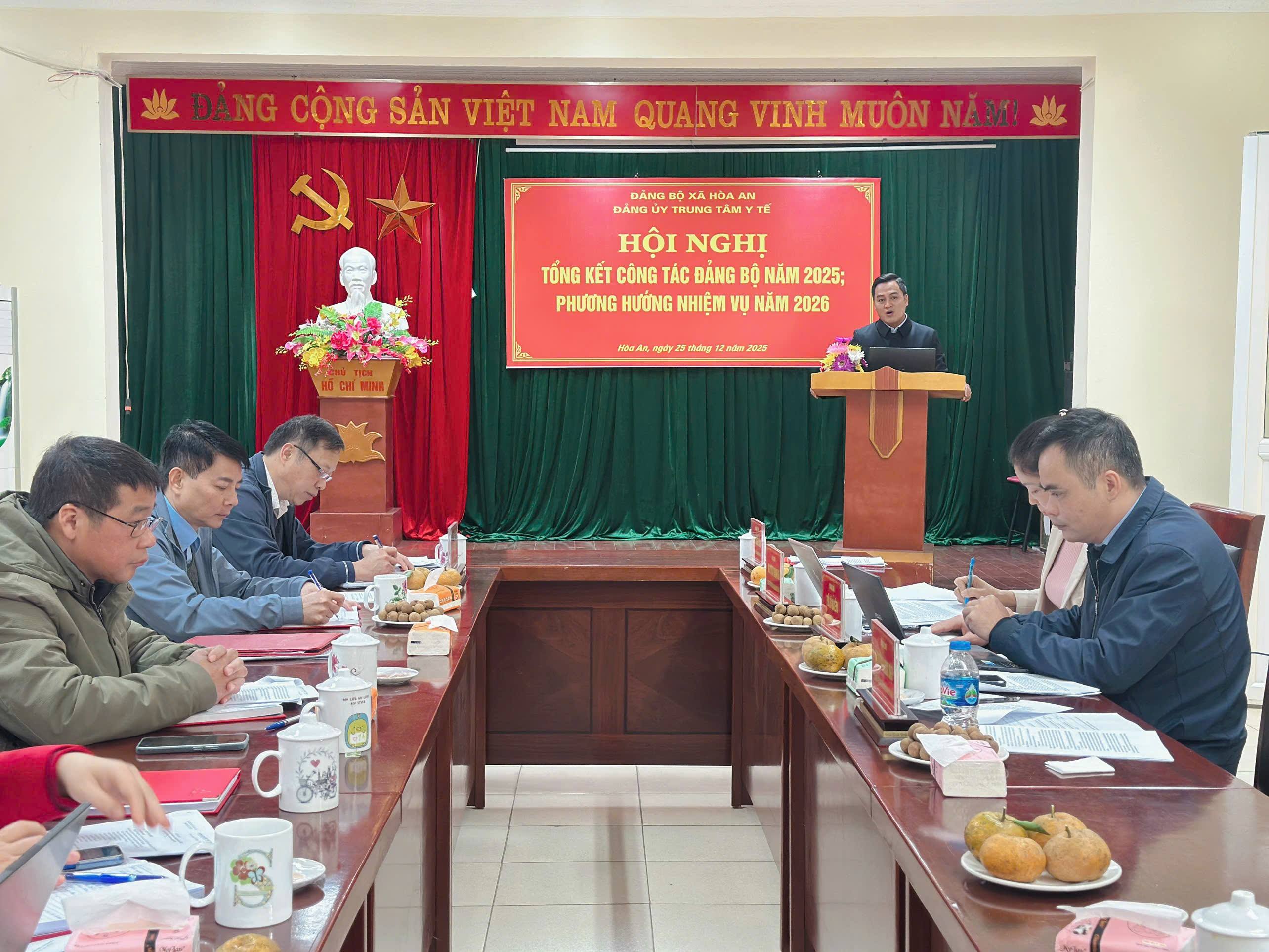 Đồng chí Luân Chiến Công, Tỉnh ủy viên, Bí thư Đảng ủy, Chủ tịch HĐND xã dự hội nghị tổng kết công tác Đảng năm 2025 tại Đảng ủy Trung tâm Y tế -