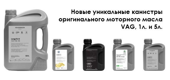 ООО «ФОЛЬКСВАГЕН Груп Рус» приняло решение о смене дизайна упаковок оригинального моторного масла. В этой связи, до конца 2020 года на рынке может присутствовать оригинальное моторное масло VOLKSWAGEN, Audi и SKODA в двух разных вариантах упаковок. При этом, все упаковки объемом 1л и 5л будут иметь защитную наклейку TESTEDGENUINE, дающую возможность конечным клиентам проверить подлинность купленного товара.