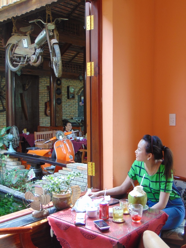 Và, dĩ nhiên là các bộ loa đài, các phương tiện dùng trong chiến tranh ở cả hai phía, ngoại xâm và giữ nước… Dĩ nhiên là không thể phong phú, đầy đủ như hiện vật ở Bảo tàng, nhưng chắc chắn lại có những món mà Bảo tàng cũng không có được. Những quán cà phê này thu hút không chỉ những người yêu vốn cổ dân gian, hoặc tìm lại một thời kỷ niệm; mà cả các em học sinh cũng thường ríu rít rủ nhau vào. Bởi vì, các hiện vật cũ xưa ấy còn được sắp đặt khéo léo trong không gian thu nhỏ của thiên nhiên: suối nước chảy, hoặc hồ nước tuôn trào, róc rách; hoa lá các loại, từ kiểng quý đến các loài hoang dại.