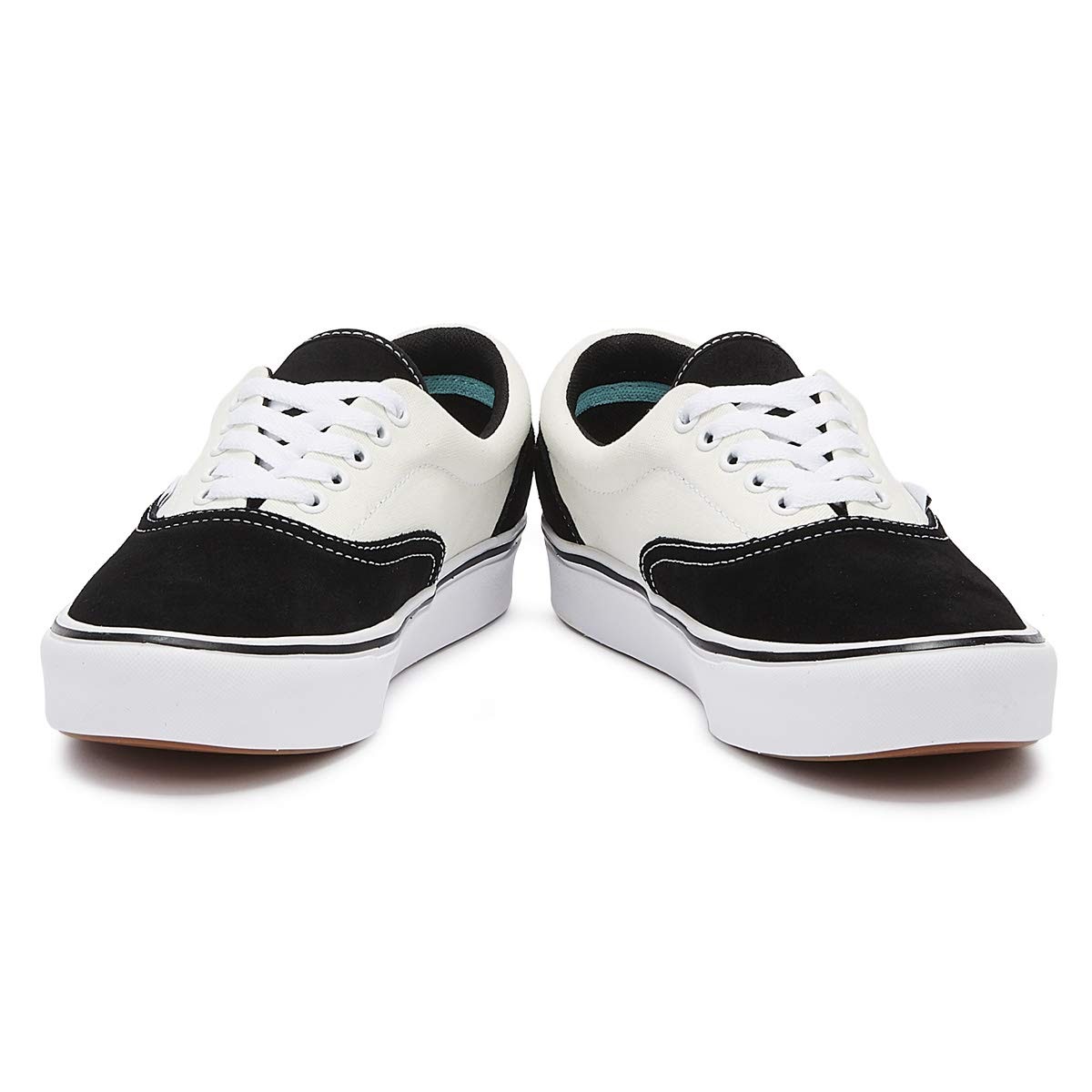 Ở Vans Era Comfycush, những nhà thiết kế đã cực kỳ đúng đắn khi lựa chọn cách mix hai tông màu này bằng việc lựa chọn những khu vực màu sắc. Ở phiên bản Vans Era này, thân giày được lựa chọn tông màu trắng tinh khôi cùng màu với đế cau su còn vị trí mũi giày và gót giày được nhấn nhá bằng màu đen. Nhìn qua đã có cảm hứng về đường nét rõ hơn, như những chú bò sữa thân thiện và đáng yêu.