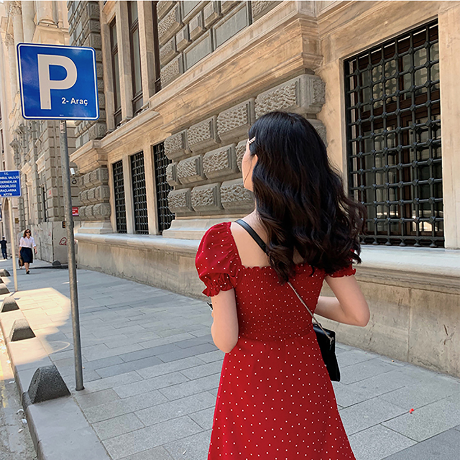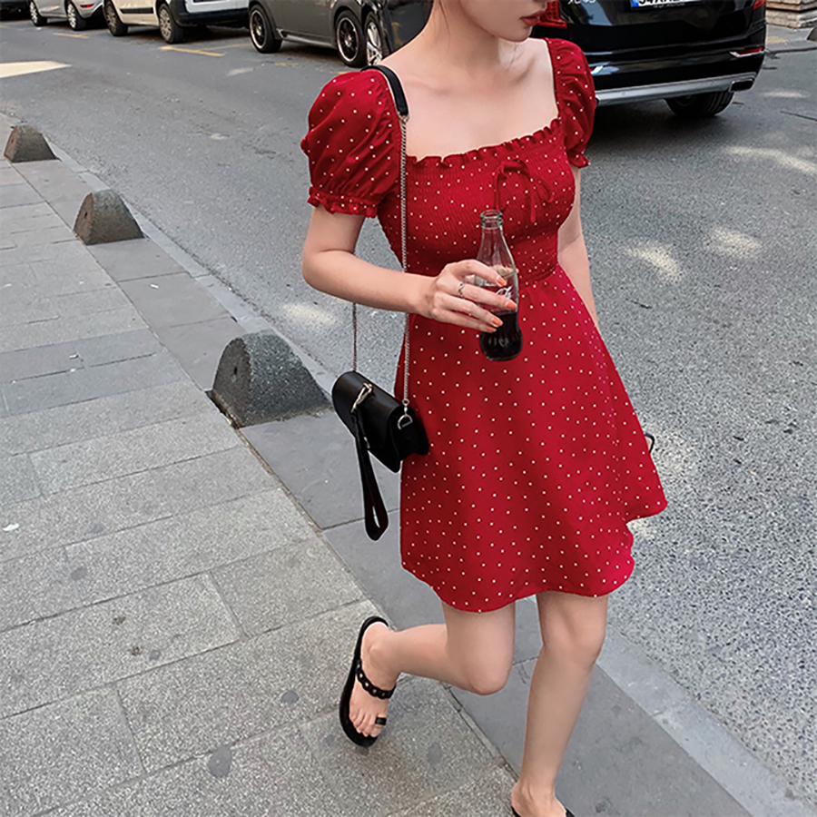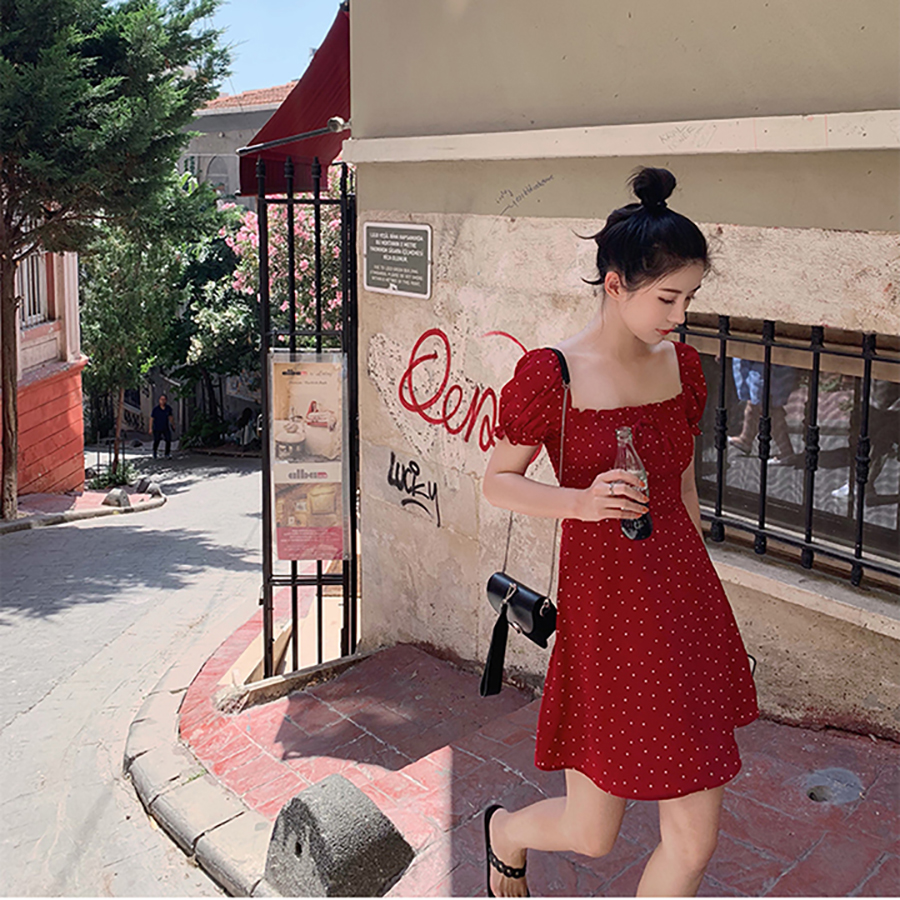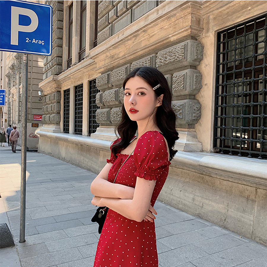 + Váy chấm bi đỏ tiểu thư mặc phong cách sành điệu