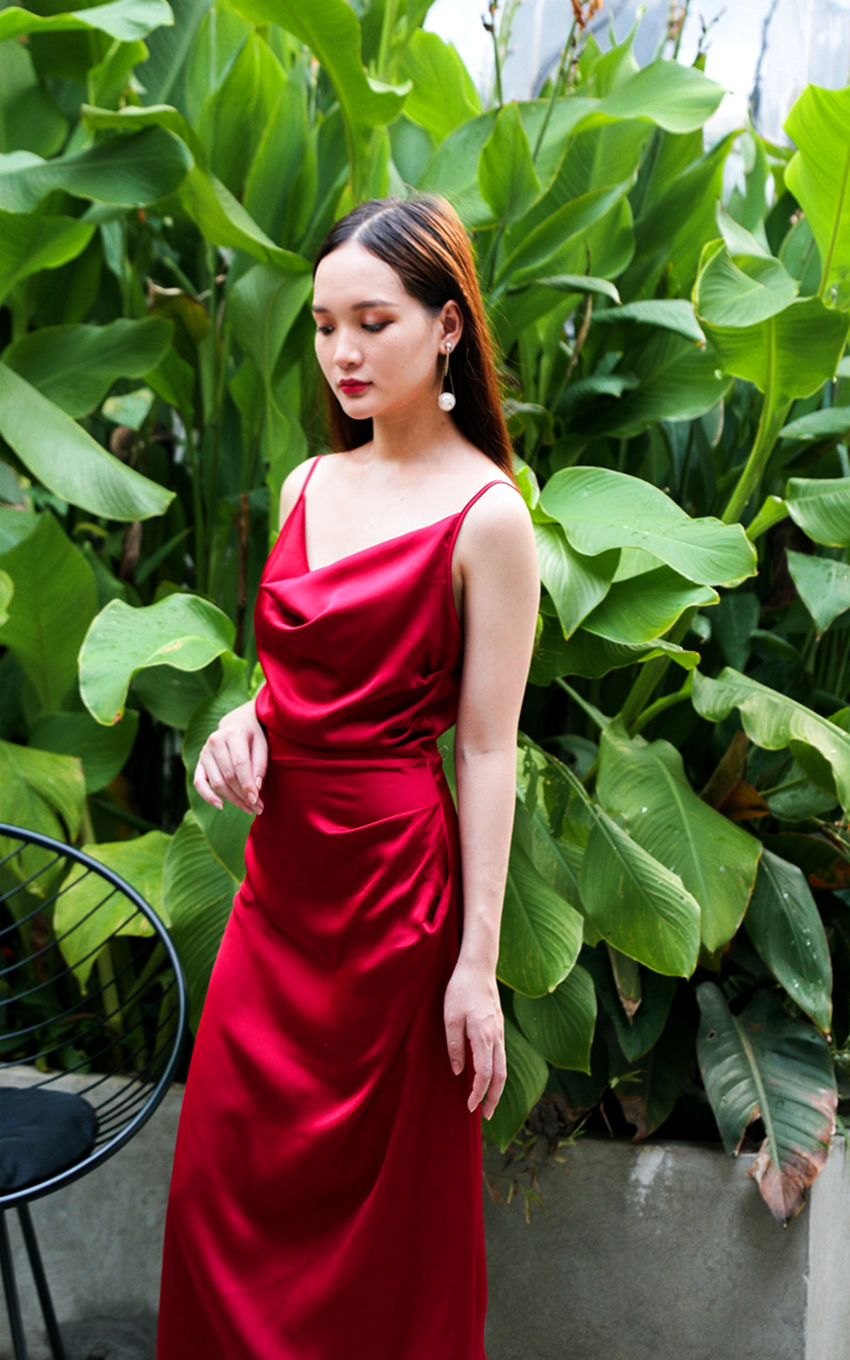 Đầm Dạ Hội Cổ đổ Thiết Kế 2 Dây Xẻ Tà Quyến Rũ