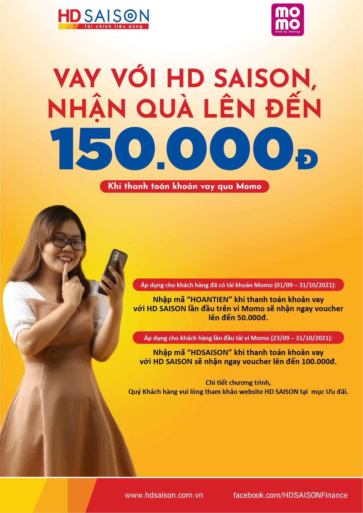 Khách hàng khi thanh toán khoản vay của HD SAISON trên MoMo sẽ nhận ngay hoàn tiền đến 150.000đ và hàng loạt thẻ quà hấp dẫn khác.