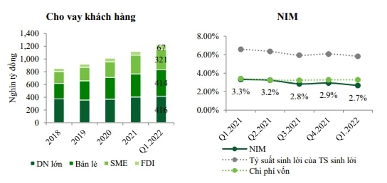 Biên lãi ròng NIM thu hẹp do lãi suất huy động dự kiến tăng và áp lực duy trì lãi suất cho vay ở mức thấp nhằm hỗ trợ nền kinh tế. Tuy nhiên, CTG có thể giảm thiểu rủi ro này thông qua chuyển dịch cơ cấu dư nợ cho vay sang các phân khúc sinh lời cao là bán lẻ và SME, cũng như cải thiện tỷ lệ CASA hiện còn thấp ở mức 19,5%.