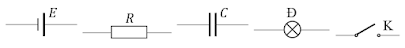 Giả sử tôi muốn vẽ một sơ đồ mạch điện như sau:Tức là tôi phải vẽ một nguồn điện E, hai điện trở, một đèn Đ, một ampe kế A, một vôn kế V và hai khung dây dẫn. Tôi chỉ cần làm như sau: