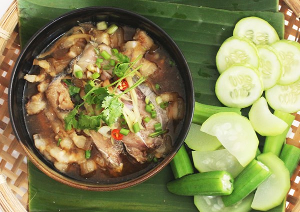 Món mắm chưng thịt ba chỉ có vị mặn ngọt, cay nồng, béo và thoảng thơm mùi gừng. Cả nhà quây quần bên mâm, gắp từng miếng dưa leo, đậu bắp, bầu luộc chấm ngập trong tô mắm, kẹp thêm miếng cá đậm đà cho vào miệng thì ngon quên mời...