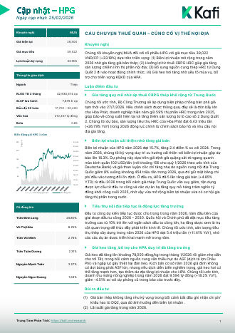 HPG: Khuyến nghị MUA với giá mục tiêu 39,022 đồng/cổ phiếuNguồn: KAFI Tải về 25/02/2026 |
