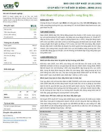 MWG: Khuyến nghị MUA với giá mục tiêu 121,438 đồng/cổ phiếuNguồn: VCBS Tải về 01/02/2026 |