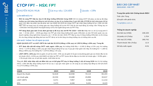 FPT: Khuyến nghị MUA với giá mục tiêu 124,400 đồng/cổ phiếuNguồn: BSC Tải về 02/02/2026 |