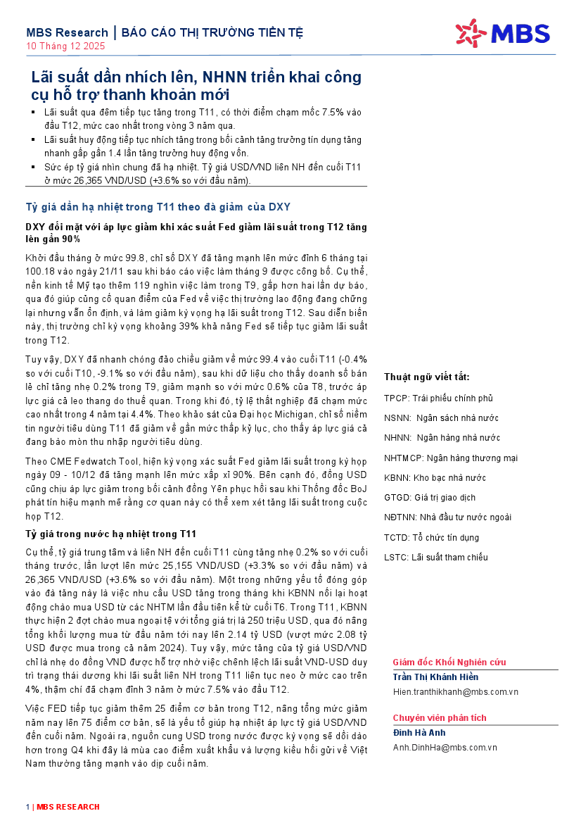 Báo cáo Thị trường Tiền tệ: Lãi suất dần nhích lênNguồn: MBS Tải về 10/12/2025