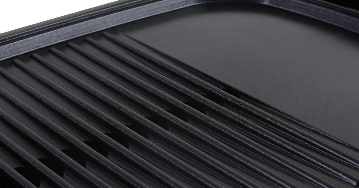 Với thiết kế nhỏ gọn, công nghệ hiện đại giúp thức ăn chín nhanh và đều hơn. Bên cạnh đó, thiết kế tay cầm cách nhiệt tạo sự an toàn và tiện lợi cho việc di chuyển. Mặt bếp phủ lớp ceramic cao cấp chống dính, chống mài mòn, không tiết ra hóa chất độc hại như các loại chất phủ thông thường khác, rất an toàn cho sức khỏe. Cấu tạo bề mặt vỉ nướng có rãnh chứa và khay hứng dầu, loại bỏ những phần mỡ thừa tiết ra tốt hơn cho sức khỏe và hạn chế tối đa khói tỏa ra khi nướng.