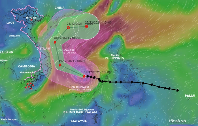 Trung tâm Dự báo Khí tượng thủy văn quốc gia cho biết lúc 10 giờ hôm nay, ngày 18-12, vị trí tâm bão ở khoảng 11,2 độ Vĩ Bắc; 115,4 độ Kinh Đông, trên vùng biển phía bắc quần đảo Trường Sa.