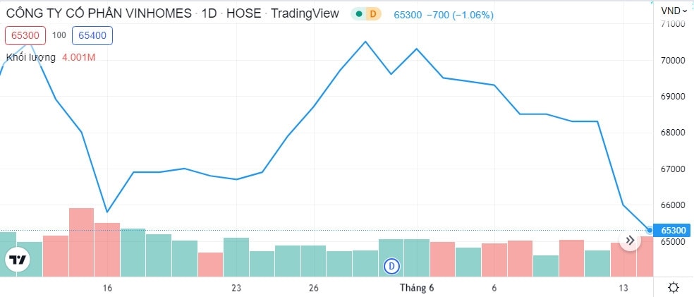 Trên thị trường, tại phiên giao dịch chiều ngày 14/6, cổ phiếu VHM giảm 1,21% về mức 65.200đ/cp. Khối lượng giao dịch trung bình 10 phiên gần nhất đạt hơn 3,2 triệu đơn vị.