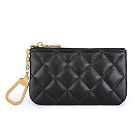Mossruta Premium Genuine Full Grain Leather Mini Coin Purse Keychain Pouch Card Holder for Men Women (Black Quilted- AG) 794,568đ