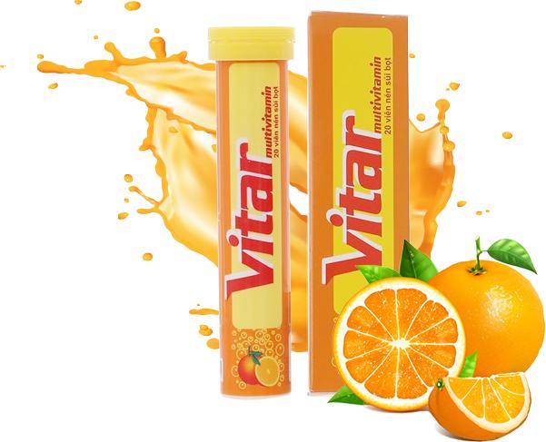 Viên sủi Vitar Multivitamin sủi nhanh trong nước, thơm vị cam và dễ uống.
