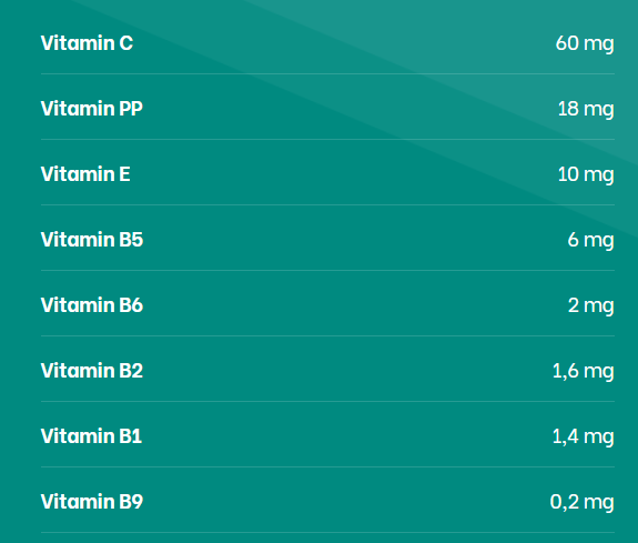 VITAMIN C: chống oxy hóa, bảo vệ màng tế bào, chống lại sự lão hóa; tác động đến việc tổng hợp collagen nên làm cho vết thương chóng liền sẹo; kích thích tổng hợp và duy trì sức bền của các tế bào da, mạch máu, răng, xương; kích thích hoạt động của hệ thống miễn dịch, chống lại sự viêm nhiễm do vi khuẩn, virus; phòng và hạn chế một số bệnh như: ung thư, tim mạch, bệnh về mắt, hô hấp,…