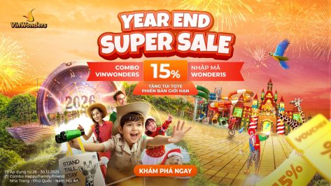 [Flash Sale] Cơn lốc WONDER15: Giảm sốc 15% vé Combo VinWonders Hạn áp dụng: 25/12 - 29/12/2025 -