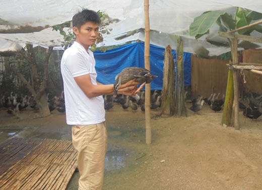 (Cadn.com.vn) - Sau khi tốt nghiệp khoa Bếp Trường Cao đẳng nghề Du lịch Huế, chàng trai Hoàng Quốc Huy (26 tuổi, trú tại TDP 3, P. Tứ Hạ, TX Hương Trà, TT-Huế) “bén duyên” với nghề đầu bếp ở một nhà hàng tại TX Sầm Sơn (Thanh Hóa). Tại trong một lần xem chương trình “Sinh ra từ làng” của kênh VTV6 - Đài truyền hình Việt Nam, thấy trang trại nuôi vịt trời của người nông dân Tô Quang Dần trên hồ Cấm Sơn (Bắc Giang) hay hay, Huy tìm đến thăm mô hình nuôi vịt trời tại Công ty Cổ phần dịch vụ thương mại Thống Nhất tại P. Bắc Sơn, TX Sầm Sơn (Thanh Hóa) để tham khảo. Một câu hỏi nảy ra trong đầu người thanh niên này: tại sao không phát triển loài vật nuôi này tại quê hương và tận dụng đất vườn rộng ở nhà?