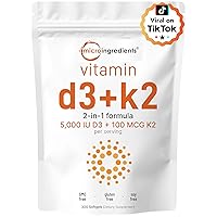 Micro Ingredients Vitamin D3 5,000 IU + K2 MK-7 100 mcg, 300 Softgels | 2-in-1 Vitamins D & K Complex | Extra Strength, Easy to Swallow, Non-GMO, Gluten Free (29658) . Mỹ 1,167,405đ