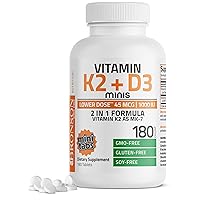 Bronson Vitamin K2 (MK7) with D3 Lower Dose 45mcg Vitamin K2 & 1000 IU Vitamin D3 Easy to Swallow Daily Maintenance 2 in 1 Formula Non-GMO, 180 Mini Tablets (328) . Mỹ 481,173đ