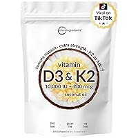 Micro Ingredients Vitamin D3 10,000 IU + K2 MK-7 200 mcg, 300 Softgels with Virgin Coconut Oil | 2-in-1 Vitamins D & K Complex | Extra Strength, Easy to Swallow, Non-GMO, Gluten Free (14947) . Mỹ 1,337,612đ
