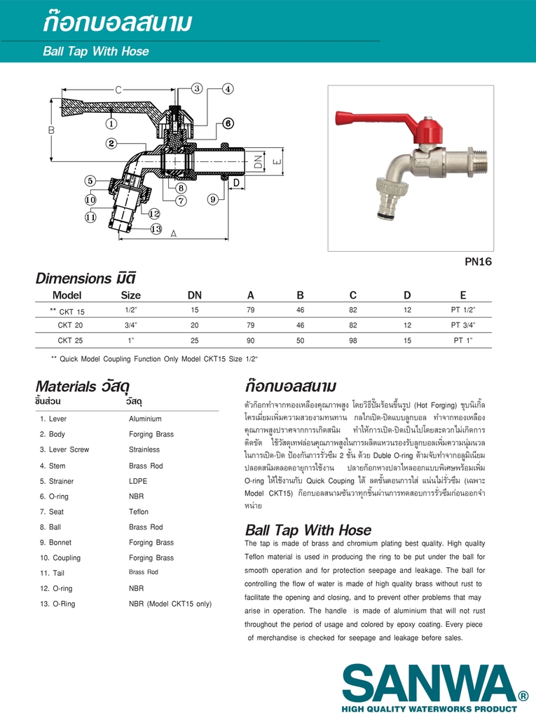 - Vòi hồ nước Sanwa 21mm tay gạt chính hãng sản xuất Thái Lan