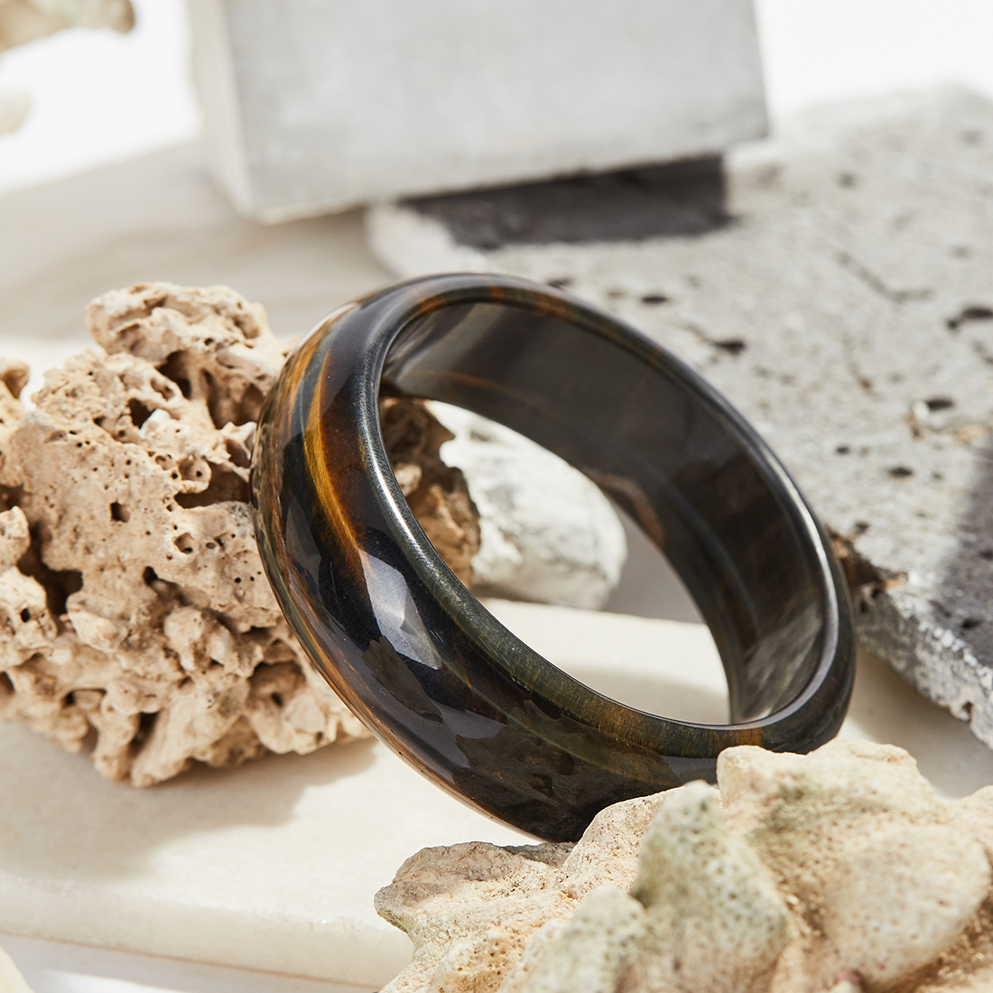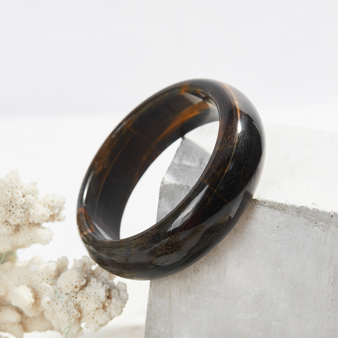 Vòng Tay đá Thạch Anh Mắt Hổ Xanh đen Bản Hẹ Dày 20mm Mệnh ...